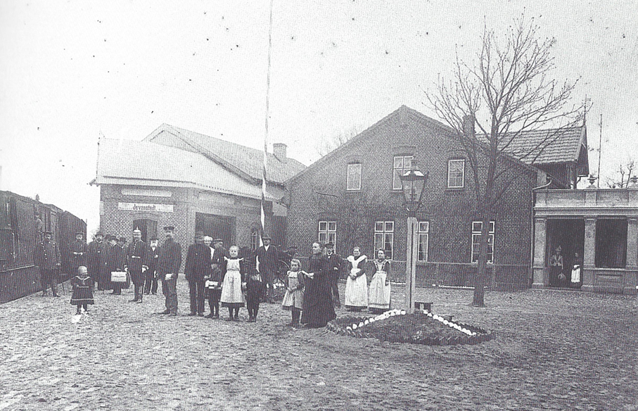 Jevenstedt historisch. Heutiges Dörpshus am Ochsenweg: Um 1902/03 als Bahnhof kurz nach der Inbetriebnahme der Kreisbahn am 21.12.1902.